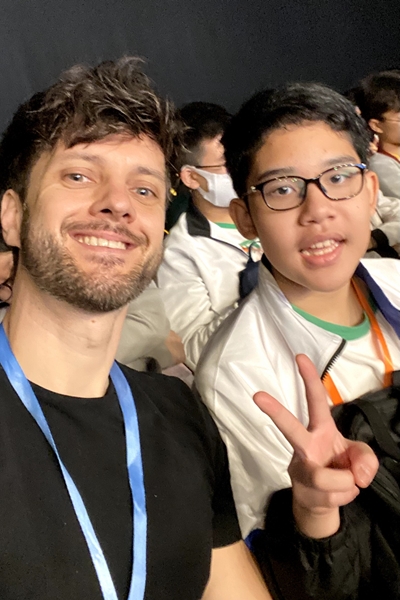 Luke and Mr.Byron snap a quick picture during the briefing session. |