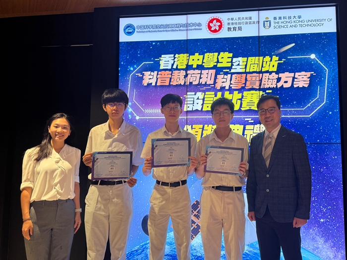 6D 陳銳柏、郭信言及余頌棋(指導老師:黃鍶晴老師)早前參加香港中學生空間站科普載荷和科學實驗方案設計比賽並獲得銀獎。