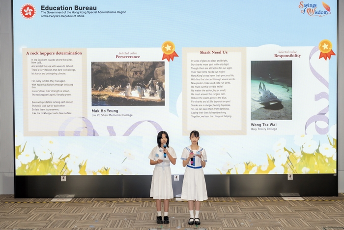The Award Presentation Ceremony for the Sayings of Wisdom Campaign 2024/25 and Fifth Anniversary Exhibition was successfully held on 20th September 2025 to acknowledge and celebrate the achievements of schools and students in various SOW territory-wide competitions and student activities organised by the English Language Education Section and the Native-speaking English Teacher (NET) Section in the 2024/25 school year. Around 400 students, teachers, principals and guests of honour were invited to the ceremony officiated by Dr Choi Yuk-lin, JP, Secretary for Education. Our student Mak Ho Yeung, Angie (class 3A) was invited to be one of the MCs, which was a great honour for her, and she truly shone in the role. She, and another of our students, Yeung Yat Long, Isaac (class 2B) received commendable awards in the Ocean Park Animal Photopoetry Competition – a wonderful achievement. Their poems and animal photographs were also displayed as part of the exhibition. We at LPSMC are immensely proud of their achievements. - Byron Wallin (NET) |